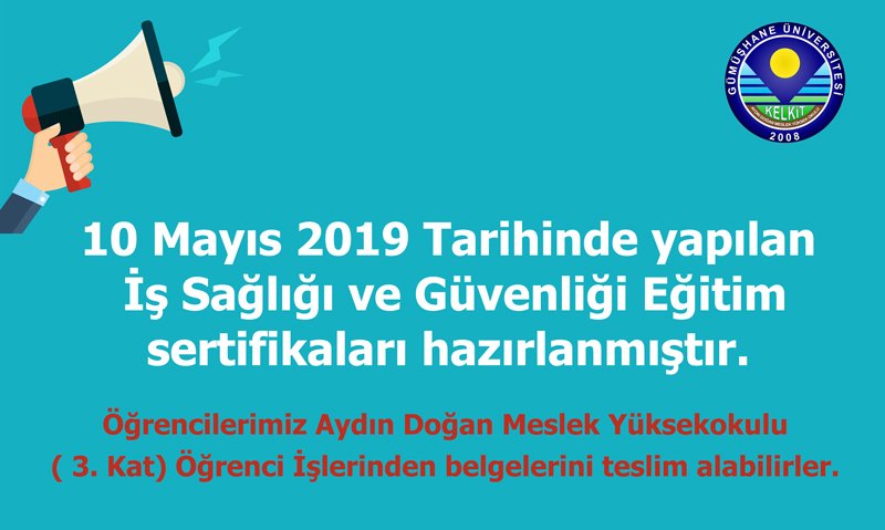 10 Mayıs 2019 Tarihinde yapılan İş Sağlığı ve Güvenliği Eğitim sertifikaları hazırlanmıştır.