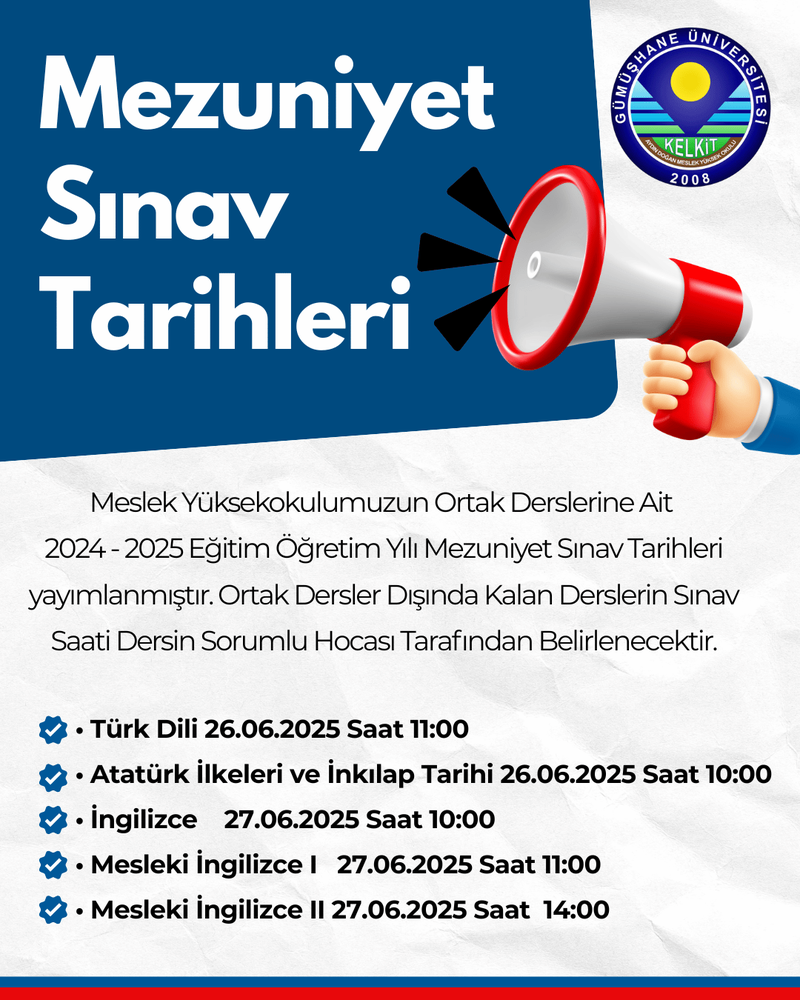 2024 - 2025 Eğitim Öğretim Yılı (Ortak Dersler) Mezuniyet Sınav Tarihleri