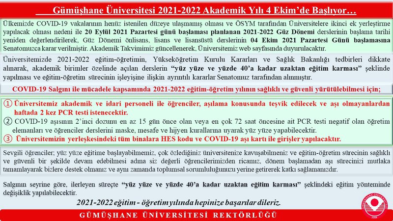 Gümüşhane Üniversitesi 2021 / 2022 Eğitim ...