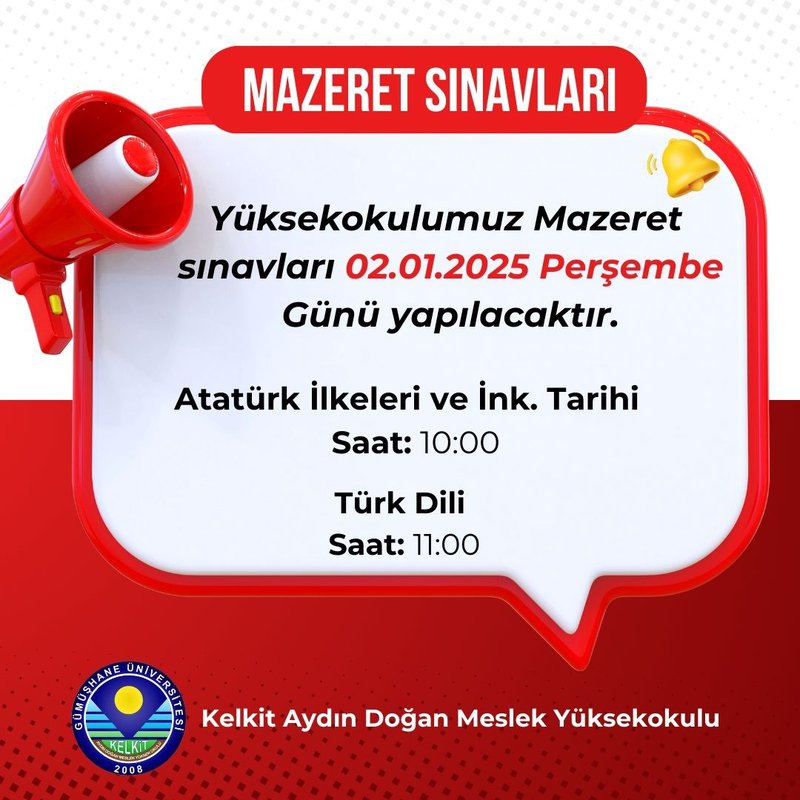 Mazeret Sınav Tarihi (02.01.2025)