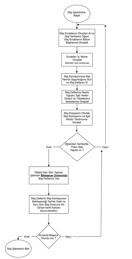 9. Belgeler teslim edildikten sonra staj dosyası öğrenci işleri yetkilisinden alınıp gerekli yerler doldurulacaktır.
