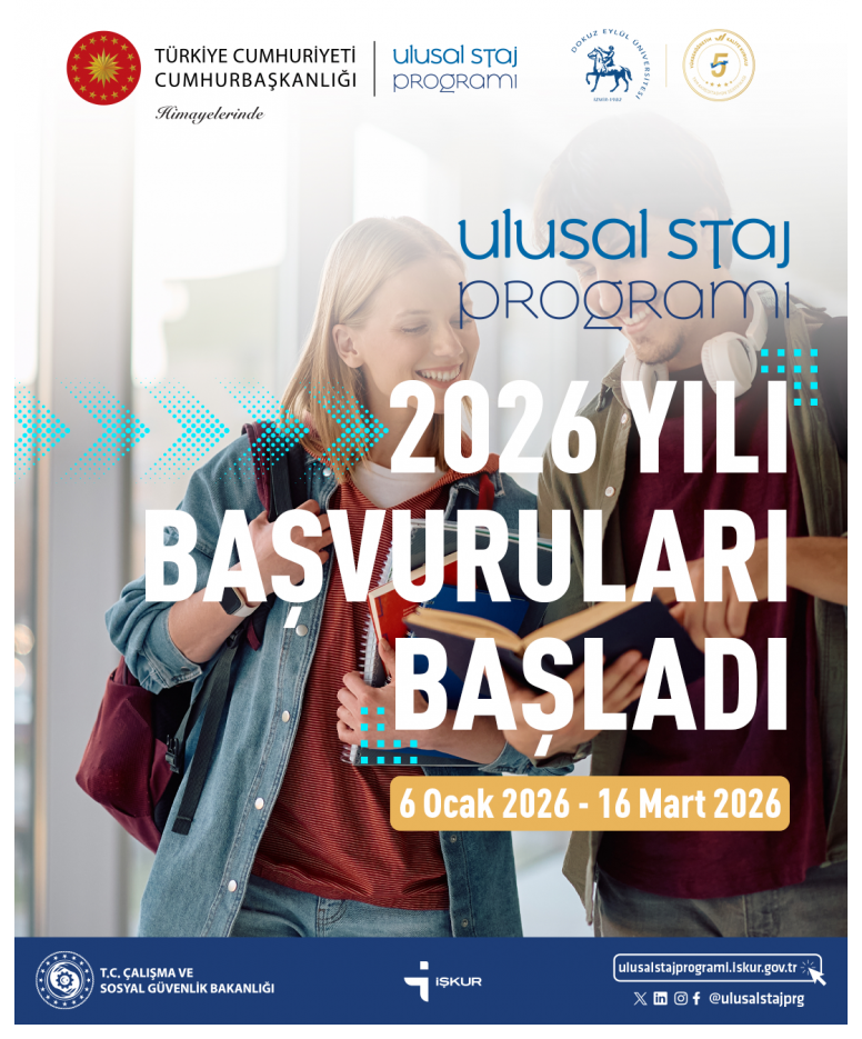 Cumhurbaşkanlığı himayelerinde ve İŞKUR koordinasyonunda yürütülen Ulusal Staj Programı kapsamında 2026 yılı başvuruları, 06 Ocak-16 Mart 2026 tarihleri arasında alınmaktadır.