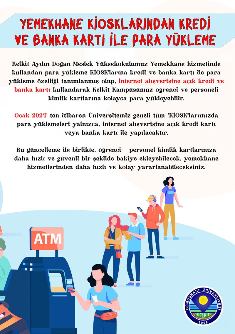Yemekhane Kİosklarından Kredİ ve Banka Kartı İle Para Yükleme
