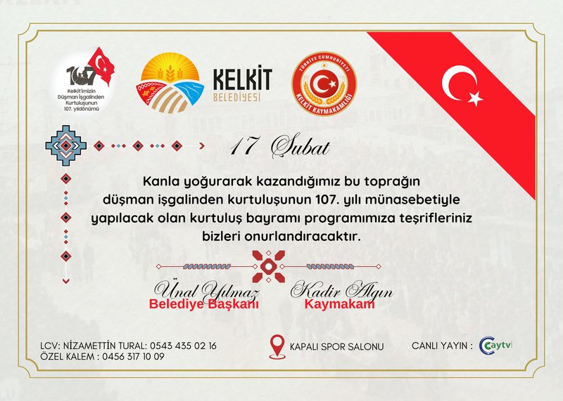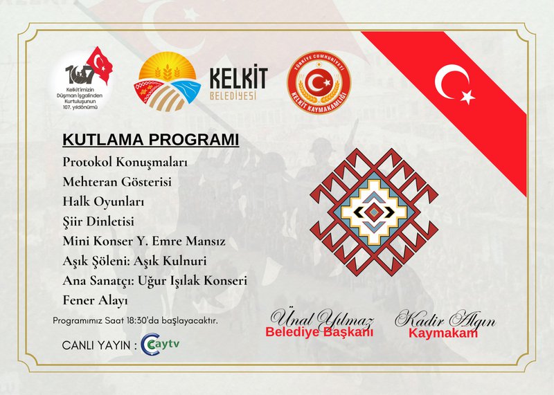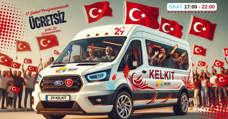 Ulaşım: Kelkit Belediyesi, programa kolay ulaşımı için 17:00-22:00 saatleri arasında dolmuşları ücretsiz olarak hizmetinize sunacaktır.