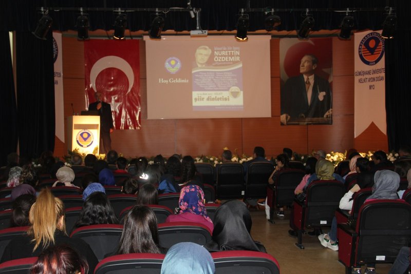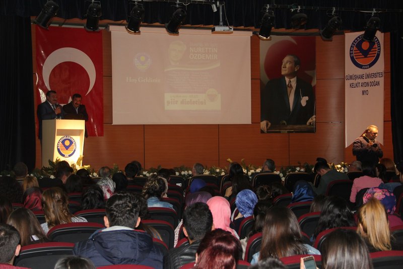 Gümüşhane'li siyasetçi ve edebiyatçı Nurettin Özdemir’in vefatının birinci yılı anısına Meslek Yüksekokulumuzun çok amaçlı toplantı salonunda Kelkit Belediyesi aracılığı ile düzenlenen şiir dinletisi programı; Kelkit Belediye Başkanı Ünal Yılmaz, Kelkit Aydın Doğan MYO Müdürü Doç.Dr. Nuri Baltacı, Kelkit Sağlık Hizmetleri MYO Müdürü Yrd.Doç.Dr. Canan Sancar, Nurettin Özdemir’in anısına isimli yarışmada dereceye giren şairler, Yüksekokulumuzun akademik ve idari personeli ve çok sayıda öğrencinin katılımları ile gerçekleşti.