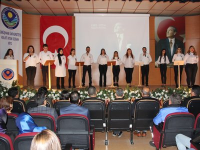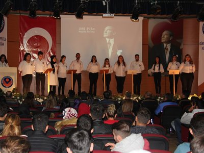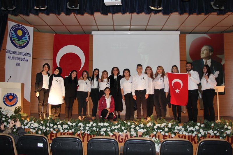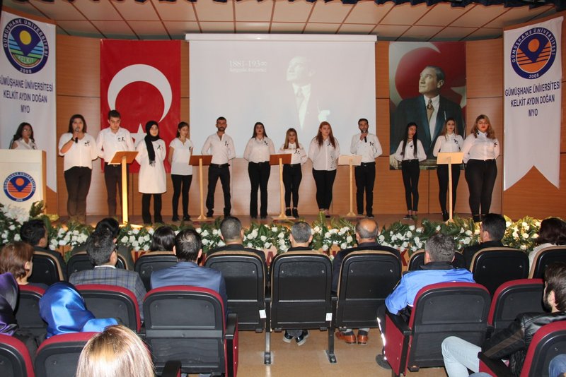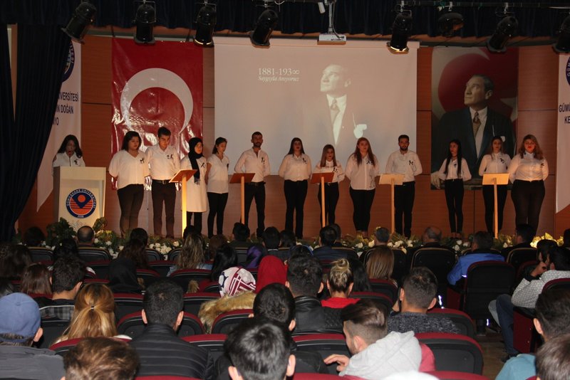 Kelkit Aydın Doğan Meslek Yüksekokulunda Cumhuriyetimizin kurucusu, Büyük Önder Gazi Mustafa Kemal Atatürk'ün aramızdan ayrılışının 79'uncu yılı Tiyatro ve Sanat Kulubü öğrencilerinin hazırlamış olduğu programda saygı ve özlemle anıldı.