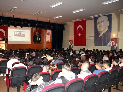 Sonrasında Eğitim Öğretimden sorumlu Müdür Yardımcısı Öğr. Gör. Burak AKINCI’da ön lisans eğitim öğretim ve disiplin yönetmeliği hakkında bilgilendirme yaptıktan sonra okulumuz Ulaştırma İşletmeciliği bölümü hocalarından Öğr. Gör. Serdar OKAN tarafından DBS ve OBS’ye giriş ve kullanımı konusunda öğrencilere bilgilendirme sunumu yaparak soru-cevap kısmından sonra program sona erdirilmiştir.