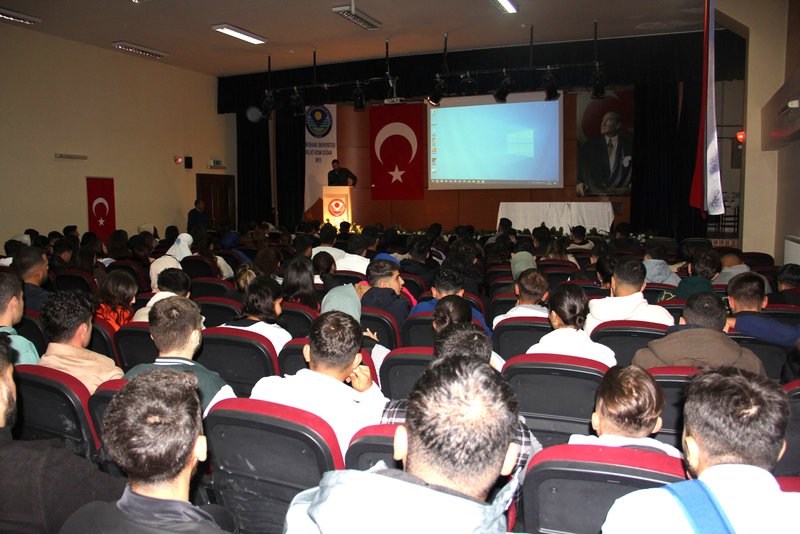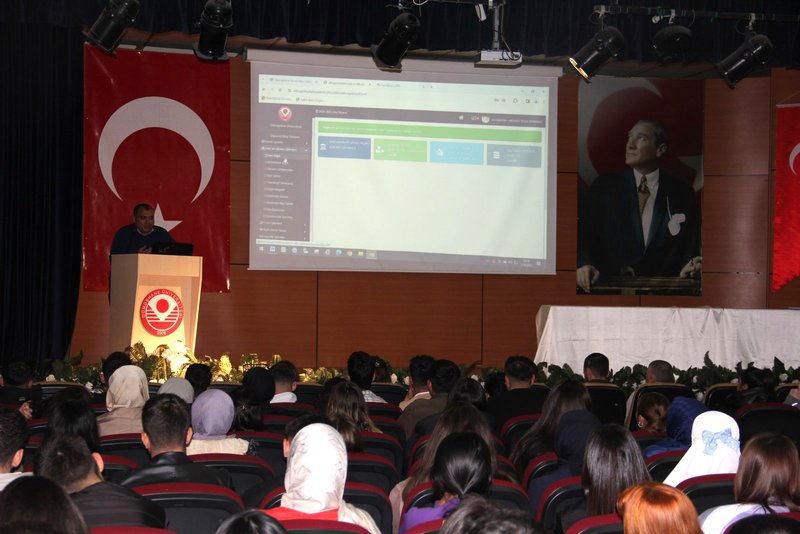 Öğrenci işleri alanında ise Memur Necati ARDİÇ, öğrenci bilgi sistemleri olan OBS ve DBS'nin kullanımı hakkında değerli bilgiler sunarken, Bilgi İşlem Personeli Ayhan YILDIZ, portal kullanımı, kablosuz internet erişimi, yemekhane kartlı geçiş sistemi ve soliclub uygulamalarıyla ilgili detaylı bir bilgilendirme yapmıştır. Bu sayede öğrencilerimizin dijital sistemlere entegrasyonu sağlanmış ve kampüs yaşamındaki pratiklere dair önemli bilgiler edinmeleri mümkün olmuştur.