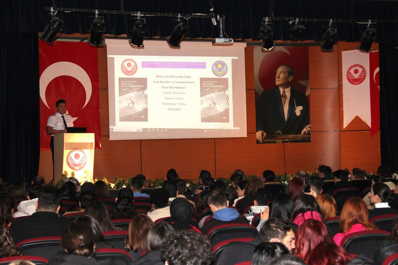 Kelkit Aydın Doğan Meslek Yüksek Okulu Ulaştırma Hizmetleri Bölümü ve Uygulamalı Bilimler Yüksek Okulu Havacılık Yönetimi Bölümünün ortaklaşa yaptığı “7 Aralık Dünya Sivil Havacılık Günü Söyleşisi ve Kitap Tanıtımı” programı 07.12.2022 tarihinde KADMYO Konferans salonunda yapılan programla başlamıştır.