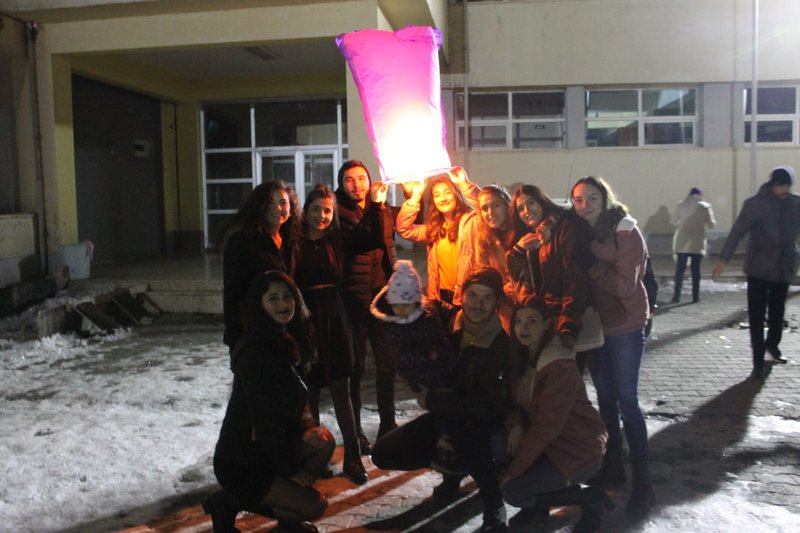 7 Aralık Dünya Sivil Havacılık Günü münasebetiyle Yüksekokulumuz Sivil Havacılık Ulaştırma Hizmetleri Bölüm öğrencileri, bölüm başkanı Öğr.Gör. Serdar OKAN ile akşam saatlerinde bir araya gelerek Yüksekokul kampüsünde dilek feneri uçurmuşlardır.