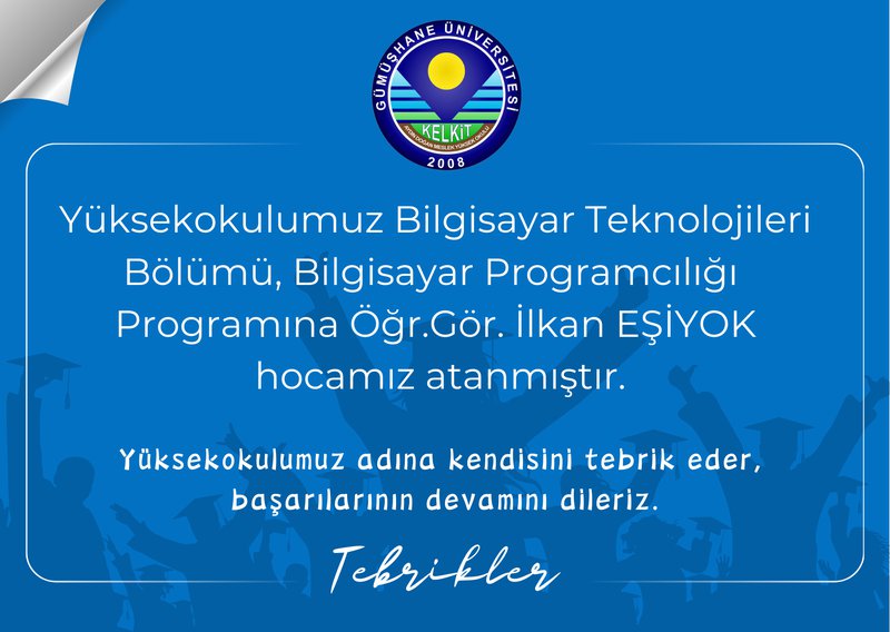 Bilgisayar Teknolojileri Bölümü, Bilgisayar Programcılığı Programına Öğr.Gör. İlkan EŞİYOK hocamız atanmıştır.