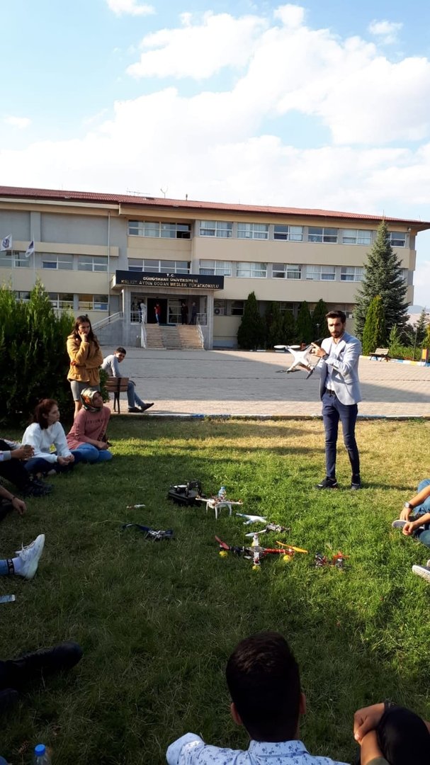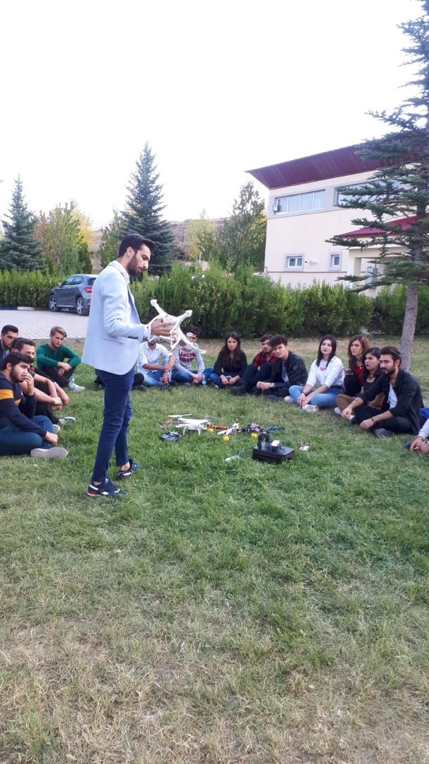Kulüp danışmanı Öğr Gör. Oğuz Köse, kulüp faaliyetleriyle ilgili ilk dersini 09.10.2019 Çarşamba günü saat 15.00’ da kulüp öğrencileri ile birlikte yüksekokulumuz kampüsünde gerçekleştirmiştir. Dersin içeriğini; drone malzemeleri, nasıl kullanıldığı ve uçurulması ilgili genel bilgiler oluşturmuştur.