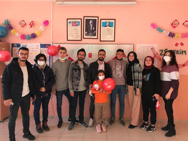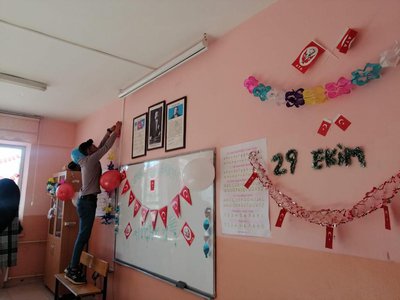 Kelkit Aydın Doğan Meslek Yüksekokulu gönüllülük dersi çalışmaları kapsamında okulumuz Müdürü Sayın Doç.Dr. Rıdvan ŞAHİN, Müdür Yardımcımız Sayın Öğr. Gör. Burak AKINCI, Spor Yönetimi Programı hocamız Sayın Öğr.Gör. Harun DURAN ve Meslek Yüksekolumuz öğrencileri ile birlikte Kelkit Milli Eğitim Müdürlüğüne bağlı Cumhuriyet İlk Okulunu ziyaret ederek 3/A sınıfının minik öğrencileri ile birlikte 29 Ekim Cumhuriyet Bayramı için sınıf süslemesi yaptılar.