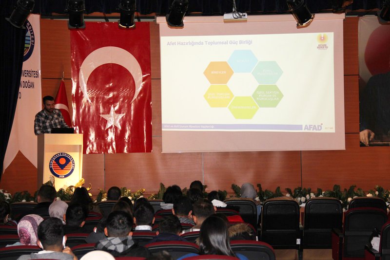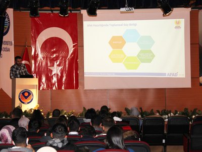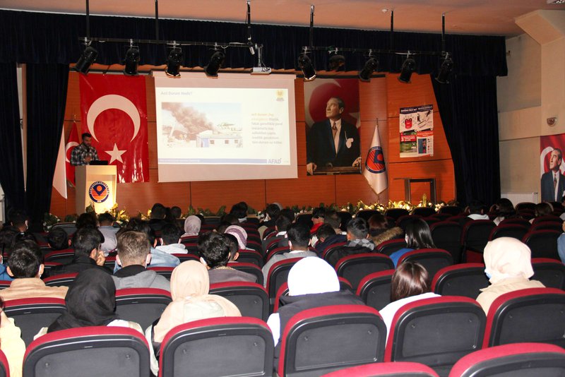 Kelkit Aydın Doğan Meslek Yüksekokulumuz Gönüllülük dersi kapsamında Spor Yönetimi Programı hocalarından sayın Öğr. Gör. Büşra ÖZTÜRK ve Öğr. Gör. Harun DURAN’ın yönetiminde öğrencilerimiz tarafından Afet haftası temalı bilgilendirme sunumu yapılmıştır. Konferans Salonunda düzenlenen sunuma Okulumuz Müdürü sayın Doç. Dr. Rıdvan ŞAHİN, Müdür Yardımcıları Dr. Öğr. Üyesi Fahrettin PALA , Öğr. Gör. Burak AKINCI ve çok sayıda öğrencinin katılımlarıyla gerçekleştirilmiştir.