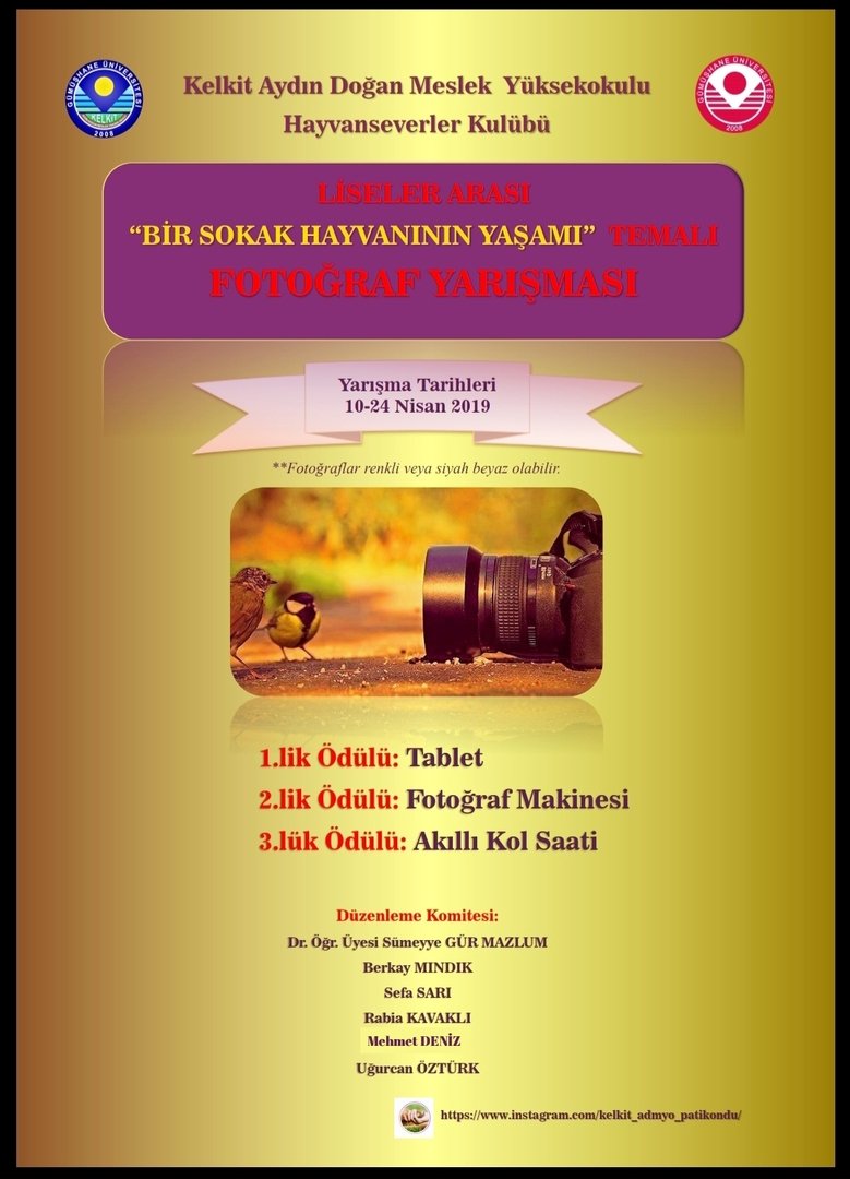 KELKİT AYDIN DOĞAN MESLEK YÜKSEKOKULU HAYVANSEVERLER KULÜBÜ LİSELER ARASI “BİR SOKAK HAYVANININ YAŞAMI” TEMALI FOTOĞRAF YARIŞMASI DEĞERLENDİRME SONUÇLARI