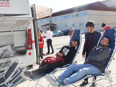 Kızılay haftası münasebetiyle gerçekleştirmiş olduğumuz kan bağışı etkinliğine Yüksekokul öğrencilerimiz yoğun ilgi gösterdiler.
