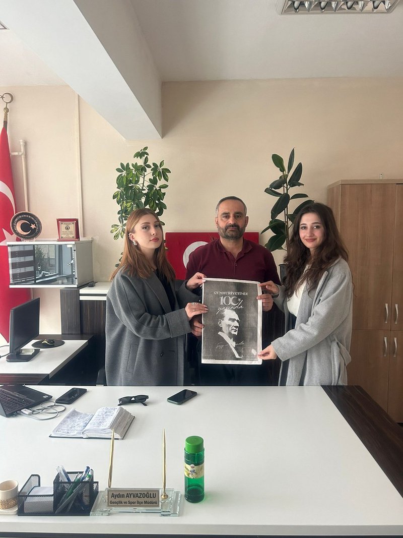 100 yıl boyunca yapılan önemli yatırımların ve atılan adımların haberleştirildiği, Mustafa Kemal Atatürk'ün kapak fotoğrafının yer aldığı özel 100. yıl gazetelerini ilçedeki önemli kurum amirlerine hediye eden öğrenciler, şu isimlere takdim etmişlerdir: