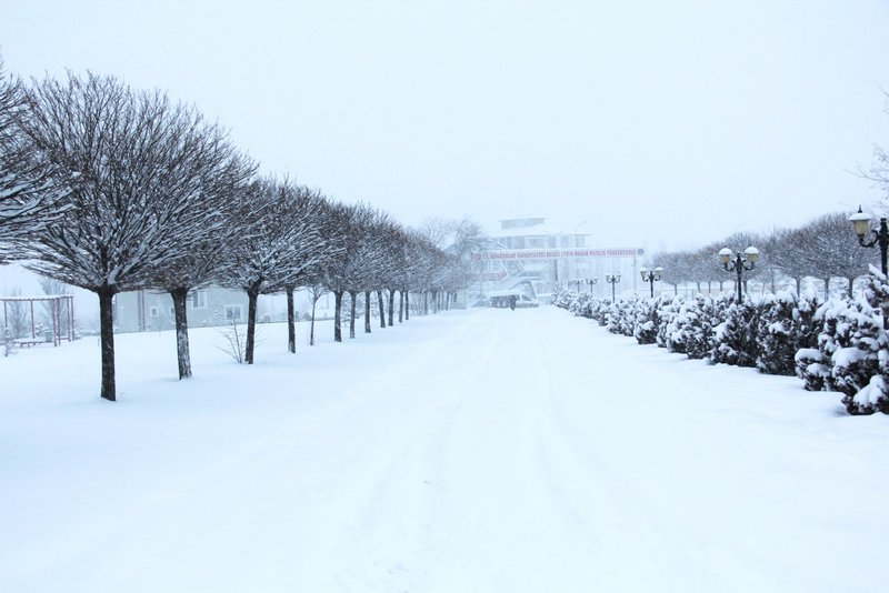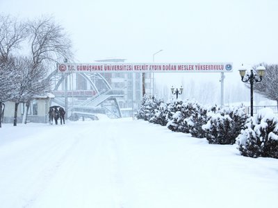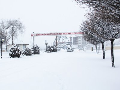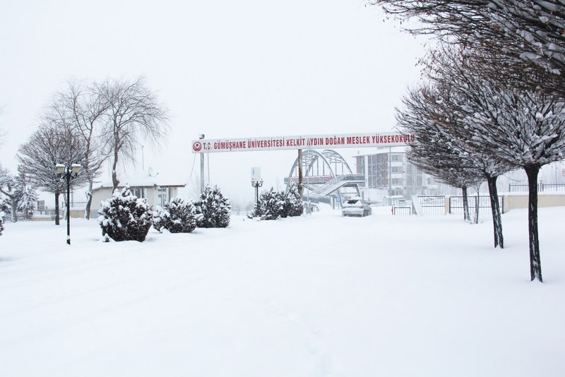 Gümüşhane genelinde dün akşam saatlerinden itibaren etkili olmaya başlayan kar yağışı Meslek Yüksekokulumuz Kampüs alanını beyaza bürüdü.
