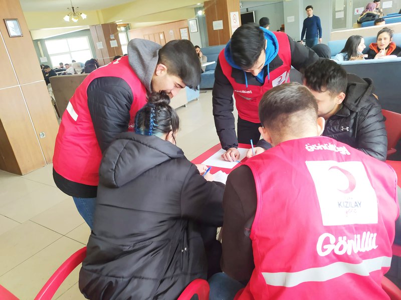 Kan bağışının bir insanlık görevi olduğunu vurgulayan Yüksekokul Müdürümüz Sayın Doç. Dr. Rıdvan ŞAHİN “Dünyada olduğu gibi ülkemizde de yeni tip koronavirüs (Kovid-19) salgının devam ettiğini ve bu süreçte Türk Kızılay’ının stoklarının devamlı dolu olması gerektiğini” söyleyerek Meslek Yüksekokulumuz olarak etkinliğe destek vererek bağışta bulunan tüm öğrenci ve personelimize teşekkürlerimizi sunuyoruz. Dedi.