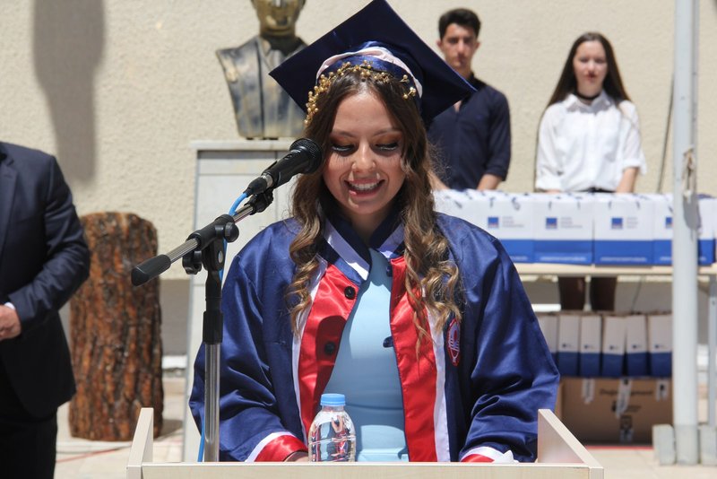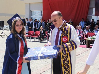 Saygı duruşu ve İstiklal Marşı ile başlayan mezuniyet töreninde mezun olan öğrencilerimiz adına Yüksekokul birincimiz Sivil Hava Ulaştırma İşletmeciliği Programı öğrencisi Beyzanur TUNÇ konuşmasında “ iki yıl önce çıktığımız bu yolda durmadan, dinlenmeden ilerledik ve meslek seçimimiz yaparak üniversite serüveninde geleceğimize yön verecek bireyler olarak bugün mezuniyetimizi kutluyoruz. En büyük temennimiz almış olduğumuz eğitimle, kazandığımız mesleki donanımlarla ve üzerimizdeki bu sorumluluğun farkında olarak mesleki hayatımızı sürdürmektir. Tunç başarının para ya da ünvanla ilgili olmadığının vurgusunu yaparak sevdiği işi yapan, yaptığı işi seven, tutkusunu en çok istediği şeyin peşinden gitmiş bir insan olmak büyük lükstür ve başarılarında en büyüğüdür” dedi.
