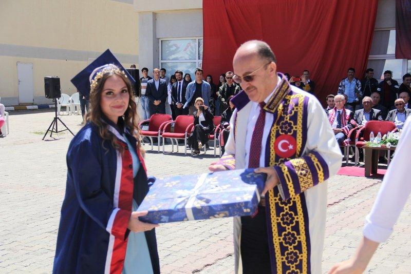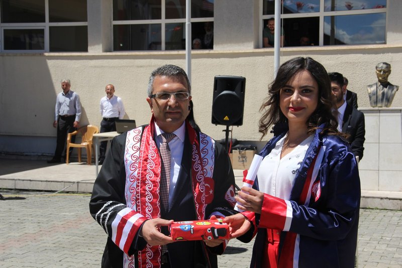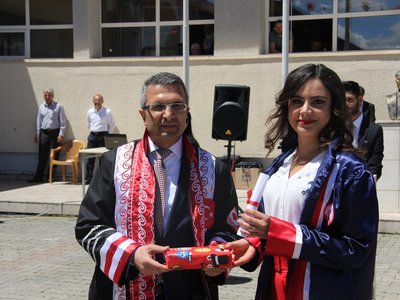 Kelkit Aydın Doğan Meslek Yüksekokulu Müdürü sayın Doç. Dr. Nuri BALTACI ise “ burada 2 yıl boyunca aldığınız eğitim bizim için son ama sizin için yeni bir hayatın başlangıcıdır ve bu süreçten sonra sizlerden beklentimiz burada almış olduğunuz eğitimle beraber yapacağınız işlerde ülkemize ve milletimize katkı sağlamanızdır. Bu ülkenin geleceği sizlersiniz ve sizler bu ülke adına yapacağınız her işte en iyisi olmak için çalışmak zorundasınız. Sizler iyi olduğunuz zaman fedakârlık yapan ailelerinizin, hocalarınızın, devletinizin ve milletinizin sizler üzerindeki emeği karşılık bulacaktır’’ dedi. Yüksekokul Müdürümüz mezun öğrencilere mezuniyet sonrası hayatlarında başarılar dileyerek öğrenci ailelerine ve katılımcılara teşekkür etti.