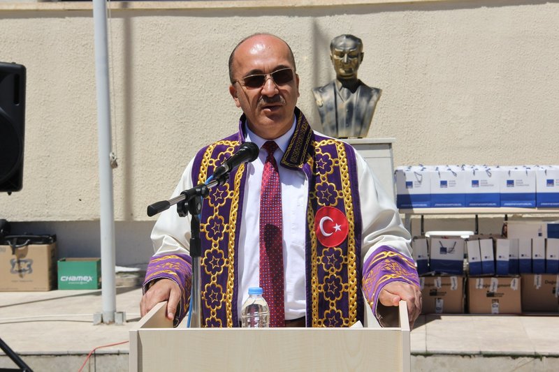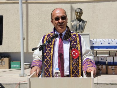 Gümüşhane Üniversitesi Rektörü sayın Prof. Dr. Halil İbrahim ZEYBEK yaptığı konuşmada “ 2002 Eylül ayında temelleri atılan bir yıl gibi kısa bir süre içinde tamamlanan Aydın Doğan Meslek Yüksekokulunun açılışından bugüne hızla büyüdüğünü ve Sağlık Hizmetleri Meslek Yüksekokulunun katılımı ile buranın Kelkit’te daha büyük bir kampüs alanı haline gelmesine vesile olduğunu, Yüksekokullarımızda yeni açılan bölümler ile öğrenci sayısını arttırmanın yanında eğitim kalitesinin de yükseldiğinin görüldüğünü söyledi. Rektörümüz Kelkit Aydın Doğan MYO Bilişim ve Robot Kulübünün katıldığı iki ayrı yarışmada çok ciddi bir başarı elde ettiğini ve yine Kelkit Sağlık Hizmetleri MYO’nun katıldığı Üniversitelerarası düzenlenen üniralli yarışmasında birincilik elde ettiğini söyleyerek burada verilen eğitim ve öğretimin kalitesinin Yüksekokullar ölçüsünde ne derece önemli olduğunu anlıyoruz’’ dedi. Rektörümüz mezun öğrencilere mezuniyet sonrası hayatlarında başarılar dileyerek öğrenci ailelerine ve katılımcılara teşekkür etti.