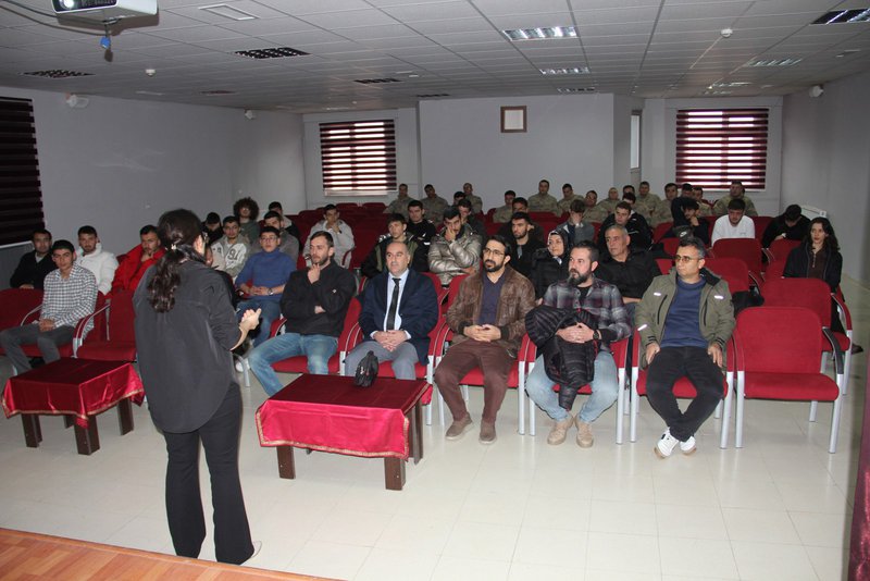 Programda ayrıca, Yüksekokulumuz Elektronik ve Otomasyon Bölümü öğrencisi Yiğit Yalçın gençlerde bağımlılık eğilimini artıran dijital mecralar, teknoloji kullanımının tetikleyici etkisi ve gençlerin karşı karşıya kaldığı riskler üzerine bilgilendirici bir sunum gerçekleştirdi.