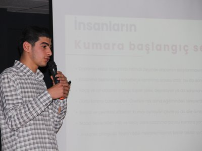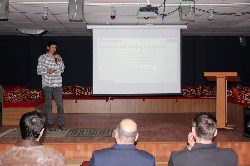Etkinlikte, Dr. Öğr. Üyesi Nazife Şahin Macit kumar bağımlılığının psikolojik temelleri, risk faktörleri ve toplumsal etkileri üzerine kapsamlı bir sunum yaptı. Macit, kumarın yalnızca bireysel bir tercih değil, aynı zamanda aile yapısını ve toplumsal düzeni derinden etkileyen bir sorun olduğuna dikkat çekti.