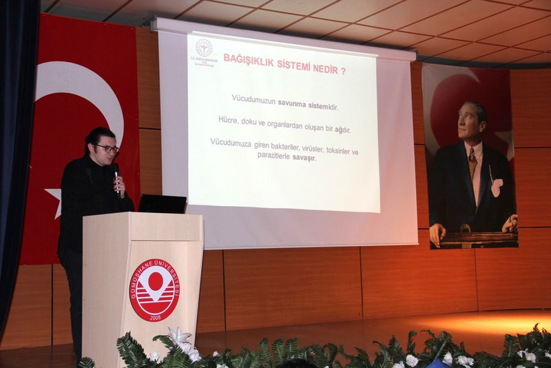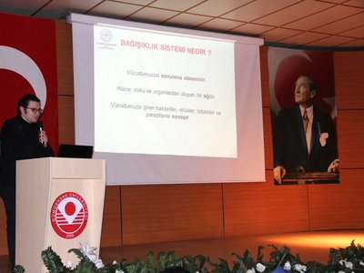 Dr. Emin Bera BALCI tarafından 1 Aralık Dünya AIDS Günü nedeniyle yapılan sunumda ise HIV (İnsan Bağışıklık Yetmezliği Virüsü) ve AIDS (Edinilmiş Bağışıklık Yetersizliği Sendromu) hakkında bilgi verdi. HIV ve AIDS'in tedavi edilebilir hastalıklar olduğunu belirterek, erken tanı ve tıbbi bakımın önemine vurgu yaptı. Dr.BALCI, HIV'in insan bağışıklık sistemini zayıflatan bir virüs olduğunu açıklarken, virüsün vücuda girdikten sonra savunma sistemini etkileyip, hastalıklara karşı direnci azalttığını ifade etti. HIV enfeksiyonu sonucu ortaya çıkan AIDS belirtilerinin 3 ay ile 15 yıl arasında, hatta daha uzun sürede ortaya çıkabildiğini belirtti. Bebek, çocuk, genç, erişkin, yaşlı, herkes HIV enfeksiyonuna yakalanabilir henüz tam iyileşmeyi sağlayacak bir tedavi ve aşının bulunmadığını ifade ederken, ilaç tedavisi ile hastanın günlük yaşamını devam ettirebilmesi için çaba harcandığını vurguladı, ancak bu ilaçların yaşam boyu kullanılması gerektiğini belirtti.