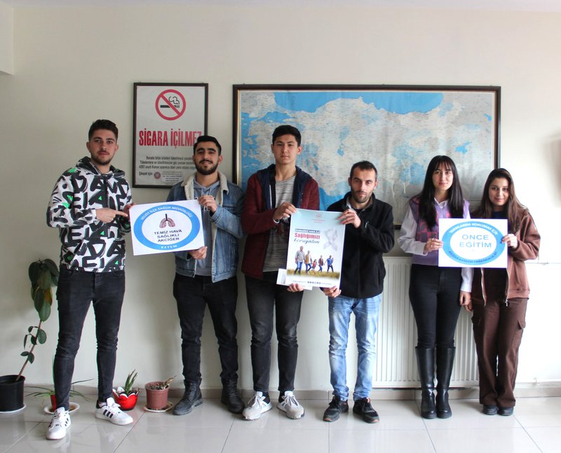 Program kapsamında, Kelkit İlçe Sağlık Müdürlüğü KETEM (Kanser Erken Teşhis Tarama ve Eğitim Merkezi) Birimi çalışanlarından Dr. Tuğba ERTÜRK, Ebe Zeynep TEMİZ ve Ebe Büşra AKAR tarafından, Akciğer Kanseri hakkında toplumda farkındalık oluşturmayı ve toplum bilincini artırmayı amaçlayan bir eğitim verilerek öğrencilere “Dumansız Hava” çağrısı yapıldı.