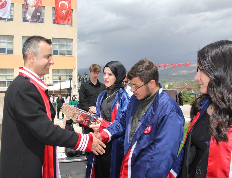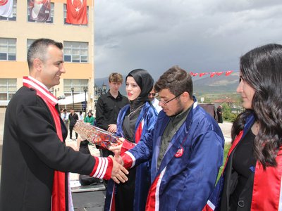 Sevgili öğrenciler, bugün bir bitişten ziyade yepyeni bir başlangıcın eşiğindesiniz. Yarın, ülkemizin dört bir yanında farklı meslek gruplarında yer alacaksınız. Hangi mesleği yaparsanız yapın, en iyisini yapmaya çalışın. Bilginizle, duruşunuzla, ahlakınızla örnek bireyler olun. Vatanımıza, milletimize ve tüm insanlığa faydalı olacağınıza inancım tam.