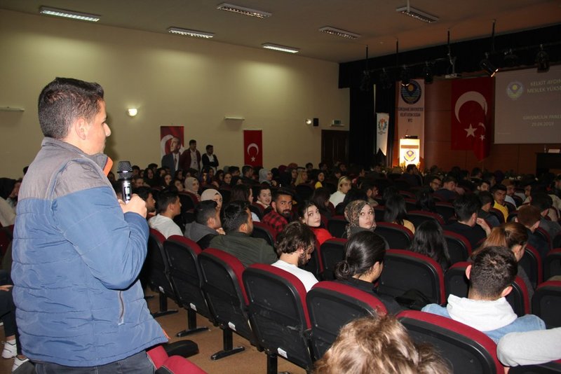 Moderatörlüğünü Öğr. Gör. Fahrettin PALA’nın yaptığı panele, okulumuz yönetim kadrosu, Kelkit Ticaret ve Sanayi Odası başkanı, genç girişimciler kurulu üyeleri ile çok sayıda akademik ve idari personelin yanı sıra girişimcilik ve KOBİ’ler dersi alan Kelkit Aydın Doğan Meslek Yüksek Okulu ve Kelkit Sağlık Hizmetleri Meslek Yüksek Okulu öğrencileri katılmıştır.