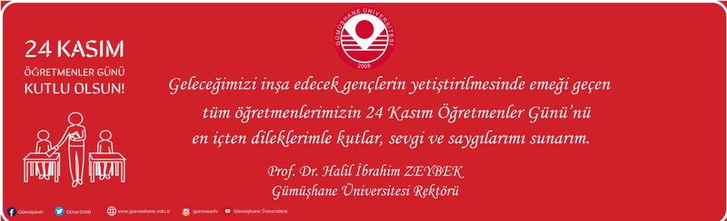 Öğretmenler vatanına, milletine ve insanlığa faydalı bireyler yetiştirmek için en yüksek gayreti gösteren ve öğrencilerinin masum zihinlerini iyiden, doğrudan ve güzelden yana olan duygularla ilmek ilmek işleyenlerdir. Gümüşhane Üniversitesi olarak bizler de bir milletin geleceğini tayin eden şüphesiz o milletin eğitimcileridir, ilkesiyle hareket ederek vatanına ve milletine bağlı, donanımlı bireyler yetiştirmek için elimizden gelen gayreti gösteriyoruz.