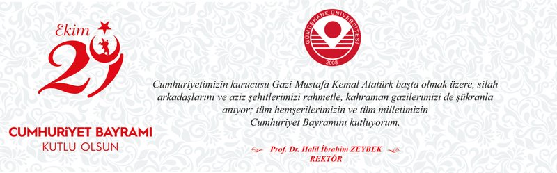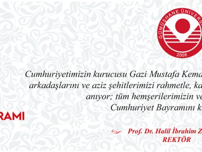 “Gazi Mustafa Kemal Atatürk’ün önderliğinde Türk milletinin kenetlenmesiyle sürdürülen Milli Mücadele’nin zaferle sonuçlanmasıyla birlikte Türkiye Cumhuriyeti'nin kurulması, tarihin ender kaydettiği bir başarıdır. 29 Ekim 1923'te TBMM, Teşkilât-ı Esasiye Kanunu'nda yaptığı değişiklikle, devletin yönetim biçimini Cumhuriyet olarak ilan etmiş, aynı gece bu ilan, atılan 101 pare top ile kutlanmıştır. Bugün gelinen noktada Türkiye Cumhuriyeti Devleti, demokrasisi, güçlü iradesi, çağdaş kurumları ve sağladığı güven ortamıyla bölgesindeki tüm mağdur ve mazlumların umut kaynağı olmuştur. Hem içeriden hem de dışarıdan olmak üzere birliğimize ve beraberliğimize yönelen bu hain ve aciz saldırıların ardında işte bu iradeden, istikrardan ve ilerleyişten duyulan rahatsızlık vardır. Ancak unutulmamalıdır ki, milletimiz 15 Temmuz 2016 gününde her türlü saldırı karşısında bir kez daha ‘Ben ezelden beridir hür yaşadım, hür yaşarım’ diyerek, bu bağımsız yaşama iradesini ve arzusunu bütün dünyaya tekrar göstermiştir. Yarınlarımızın güçlü, aydınlık ve huzurlu Türkiye’sini bilginin öncülüğünde elbirliği ile inşa edebilmek için, Gümüşhane Üniversitesi olarak gelebilecek her türlü tehlikelere karşı bilimin ışığında düşünerek, çalışarak, üreterek ve özellikle son günlerde daha fazla ihtiyaç duyduğumuz birlik ve beraberlik ruhumuzu koruyarak çalışmaya devam ediyoruz. Bu duygu ve düşünceler ile birlikte başta Cumhuriyetimizin kurucusu Gazi Mustafa Kemal Atatürk olmak üzere bütün istiklal kahramanlarımızı ve bu toprakları bize vatan kılmak için canlarını feda etmiş tüm aziz şehitlerimizi ve gazilerimizi minnet ve saygıyla anıyor, Cumhuriyetimizin temel değerlerine yürekten bağlı milletimizin 29 Ekim Cumhuriyet Bayramı’nı yürekten kutluyorum.”