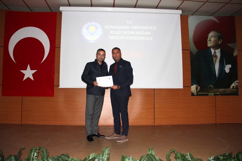Ardından, misafir konuşmacı olarak davet edilen Gümüşhane Kadastro İl Müdürü Uğur Orak, Tapu ve Kadastro Genel Müdürlüğü'nün 177. kuruluş yıl dönümü etkinliği kapsamında bir konuşma yaptı. Orak, konuşmasında tapu ve kadastro alanının önemi, mesleki yetkinlikler ve mezun olmaya hazırlanan öğrencilerin sahip olması gereken donanımlara değindi.