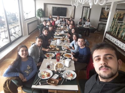 Aydın Doğan MYO Tiyatro ve Sanat Kulübü öğrencileri, Güz Eğim-Öğretim döneminde sunmuş oldukları başarılı skeçlerden dolayı Yüksekokul Müdürü Doç.Dr. Nuri BALTACI tarafından organize edilen kahvaltıda biraraya geldiler. Müdür Yrd. Dr. Öğr.Üyesi Nilgün DOĞAN ve kulüp danışmanı Öğr.Gör. Demet AKKAYA BELLİKLİ'nin de katıldığı kahvaltıda Bahar Eğitim-Öğretim döneminde kulüp faaliyetlerinin kapsamı ve oynanacak skeçler ayrıntılı bir şekilde konuşuldu.