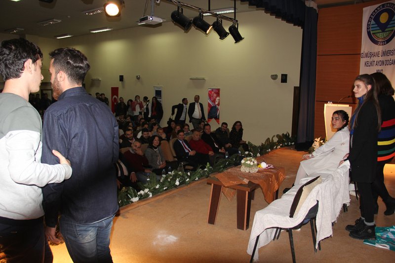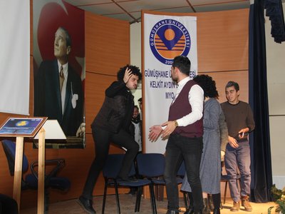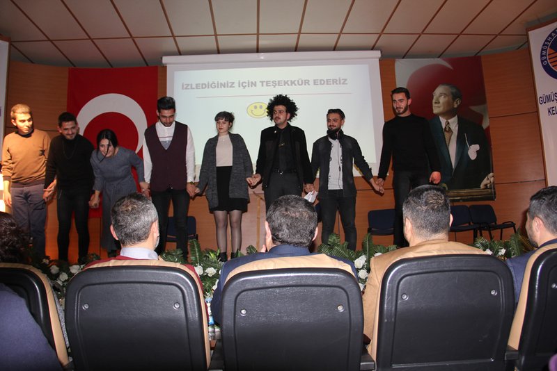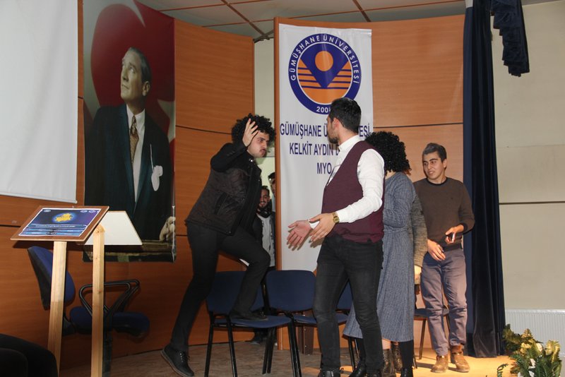Gümüşhane Üniversitesi Kelkit Aydın Doğan Meslek Yüksekokulu Tiyatro ve Sanat Kulübü Danışmanları Dr. Öğr. Üyesi Nilgün DOĞAN ve Öğr. Gör. Demet AKKAYA BELLİKLİ tarafından kulüp öğrencileri ile hazırlanan tiyatro gösterisi, Kelkit Belediye Başkanı Ünal YILMAZ, Yüksekokul Müdürü Doç. Dr. Nuri BALTACI, Kurum Amirleri, Akademik-İdari Personel ve öğrencilerin katılımıyla Yüksekokulumuz Toplantı Salonunda gerçekleştirilmiştir.