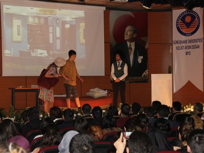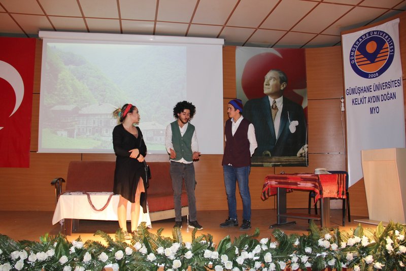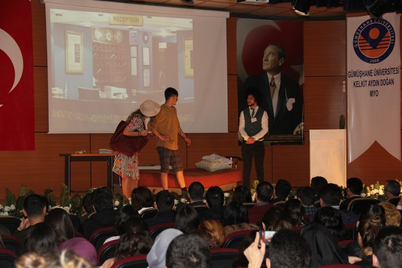 Aydın Doğan Meslek Yüksekokulu Tiyatro ve Sanat Kulübünün danışmanları Mdr. Yrd. Dr. Nilgün DOĞAN ve Öğr. Gör. Demet AKKAYA BELLİKLİ tarafından kulüp öğrencileri ile birlikte hazırlanan tiyatro gösterisinin sunumu Çok Amaçlı salonda yapılmıştır. Kulüp öğrencilerinin gösterdiği üstün performanstan dolayı kendilerini tebrik eder, başarılarının devamını dileriz.