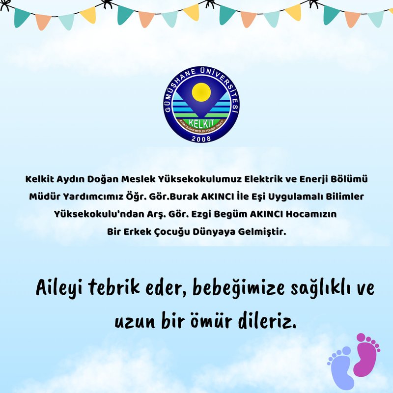 Yüksekokulumuz Elektrik ve Enerji Bölümü, Müdür Yardımcımız Öğr.Gör. Burak AKINCI İle Eşi Uygulamalı Bilimler Yüksekokulu'ndan Arş.Gör. Ezgi Begüm AKINCI Hocamızın Bir Erkek Çocuğu Dünyaya Gelmiştir.