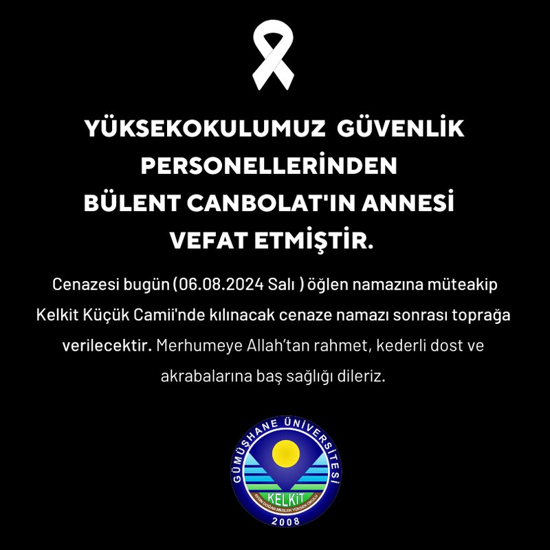 Yüksekokulumuz Güvenlik Personellerinden Bülent CANBOLAT'ın Annesi Vefat Etmiştir.