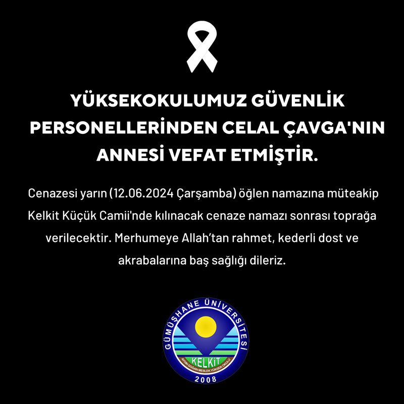 Yüksekokulumuz Güvenlik Personellerinden Celal ÇAVGA’ın Annesi Vefat Etmiştir.