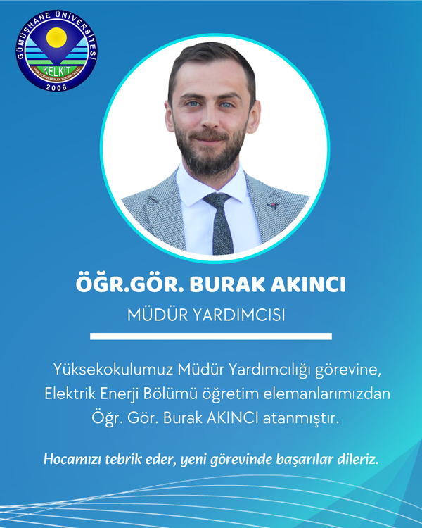 Yüksekokulumuz Müdür Yardımcılığı Görevlerine Öğr. Gör. Burak Akıncı ve Öğr. Gör. İkram Çoşar Atanmıştır.