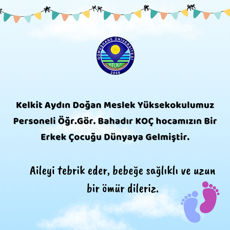 Yüksekokulumuz Personeli Öğr.Gör. Bahadır KOÇ Hocamızın Bir Erkek Çocuğu Dünyaya Gelmiştir.