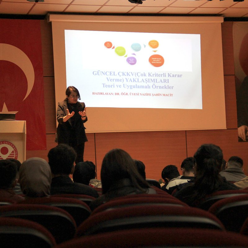 Yüksekokul konferans salonunda düzenlenen eğitime akademik ve idari personelin yanı sıra çok sayıda öğrenci katıldı. Eğitimde, karar verme süreçlerinde birden fazla kriterin birlikte değerlendirilmesinin önemi vurgulanırken karmaşık problemlerin bilimsel yöntemlerle analiz edilmesi gerektiğine dikkat çekildi.