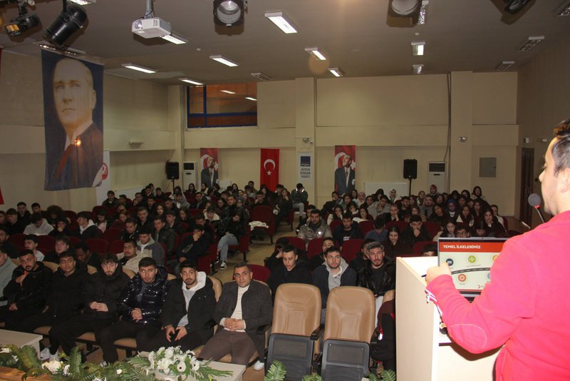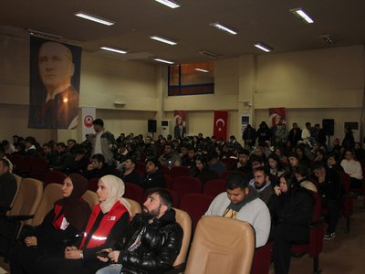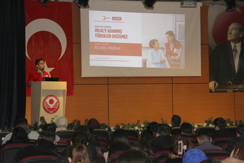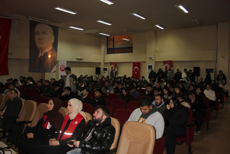 Söyleşide; afet hizmetleri, sosyal hizmetler, halk sağlığı ve psikososyal destek çalışmaları ile kan hizmetleri hakkında bilgilendirmelerde bulunulurken, toplumsal güçlendirme alanında görev yapan Ali Kömürcü öğrenciler ve katılımcılarla bir araya geldi.
