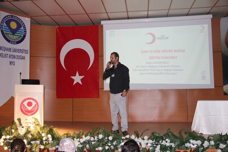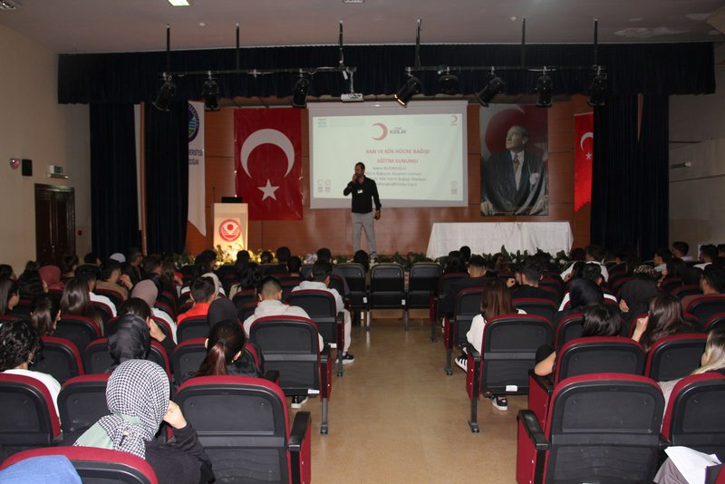 Yüksekokulumuz, sağlık ve toplumsal sorumluluk bilincini pekiştirmek amacıyla düzenlediği kan, kök hücre ve kan bağışı etkinliği ile dikkat çekti. Aydın Doğan Meslek Yüksekokulumuzun çok amaçlı konferans salonunda gerçekleştirilen etkinlikte, Doğu Karadeniz Kök Hücre Bağış Kazanım Merkezi uzmanlarından Adem BUDAYOĞLU ve Gümüşhane Kızılay Kan Bağış Uzmanı Adem BAL, Yüksekokulumuz akademik ve idari personel ile çok sayıda öğrencinin katılımıyla kan ve kök hücre bağışının önemi hakkında bilgilendirici sunum yapıldı.