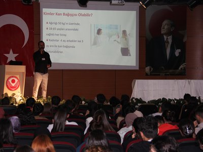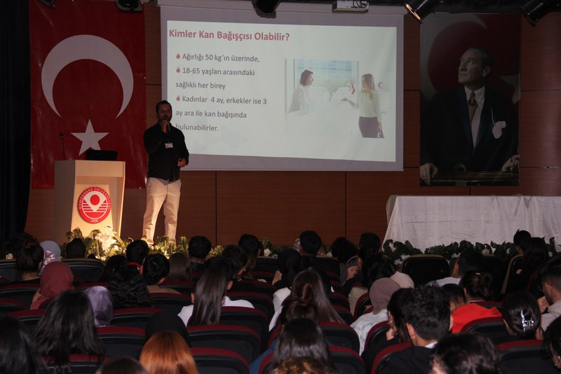 Etkinlik sırasında Kazanım Uzmanı Adem BUDAYOĞLU, kan bağışının hayat kurtarıcı etkisini vurgulayarak, düzenli kan bağışının toplum sağlığına olan olumlu katkılarından bahsetti. Aynı zamanda kök hücre bağışının birçok hasta için kritik bir umut kaynağı olduğunu belirtti. Bu iki bağış türünün nasıl gerçekleştirilebileceğini ve süreç sırasında nelere dikkat edilmesi gerektiğini detaylandıran BUDAYOĞLU, bağışın topluma sağladığı faydalara da dikkat çekti. Sunum, katılımcıların büyük ilgisini topladı ve bilinçlendirme açısından önemli bir rol oynadı. Kan bağışının süreçleri hakkında bilgi vererek, kan bağışının düzenli yapılmasının neden önemli olduğunu anlattı. Kan ve kök hücre bağışının sadece bireyler için değil, toplum genelinde sağlık açısından büyük bir öneme sahip olduğuna vurgu yaptı.