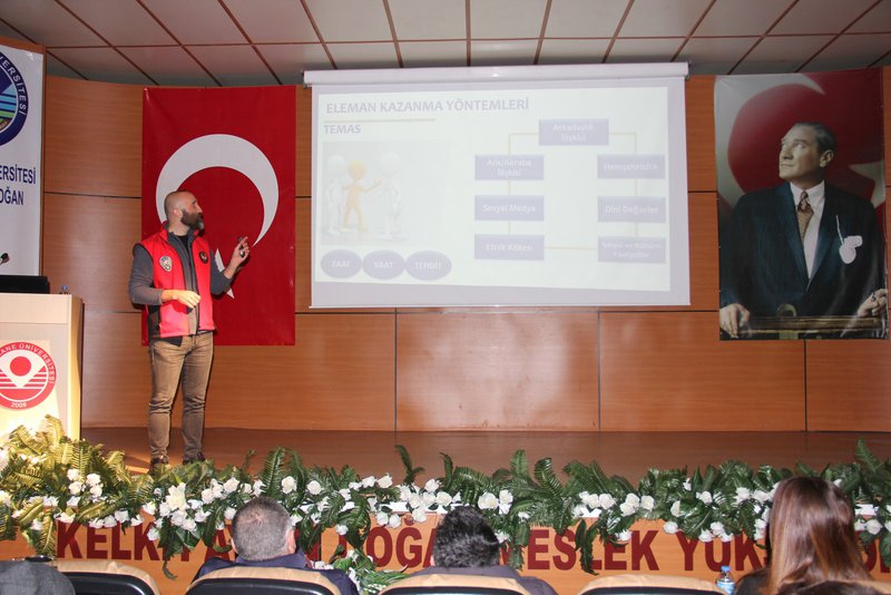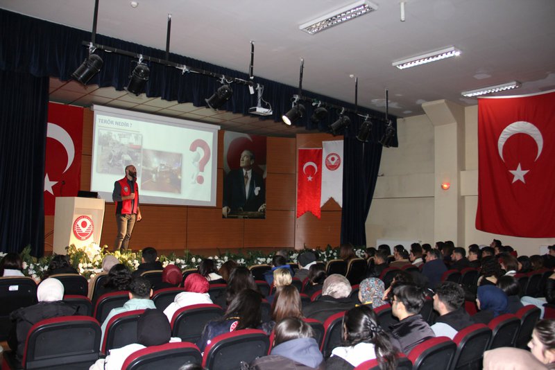 Gümüşhane İl Emniyet Müdürlüğü Terörle Mücadele Şube Müdürlüğü ekipleri, Kelkit Aydın Doğan Meslek Yüksekokulumuzun çok amaçlı konferans salonunda geniş katılımlı bir seminer düzenledi. Akademik ve idari personelin yanı sıra çok sayıda öğrencinin katılımıyla gerçekleştirilen etkinlikte, terör örgütlerinin yapıları, ideolojileri ve faaliyetleri hakkında kapsamlı bilgiler verildi.