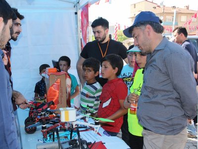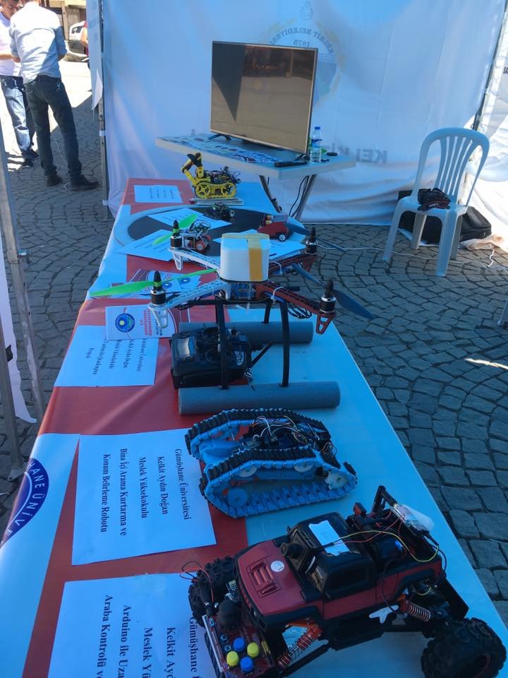 Meslek Yüksekokulumuzun tanıtım standında okula ait tanıtım çalışmaları ve Eğitim - Öğretim yılı boyunca öğrencilerimiz tarafından yapılan robot çalışmaları sergilendi.